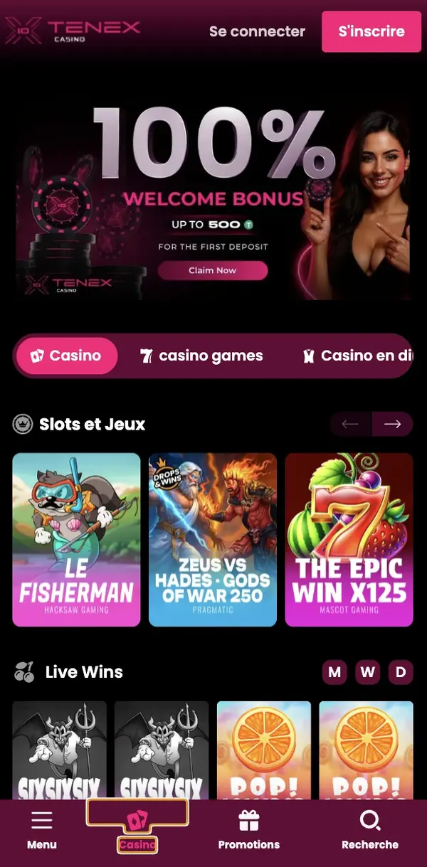 - Offres adaptées au mobile : Notre bonus Tenex pour les nouveaux joueurs en France est de 100 % jusqu’à 500 EUR + 150 FS (dépôt min. 10 EUR, conditions de mise 25x Dépôt + Bonus).